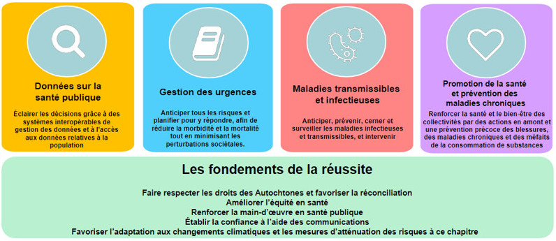 Les 4 priorités stratégiques du Réseau de santé publique comprennent les domaines suivants :